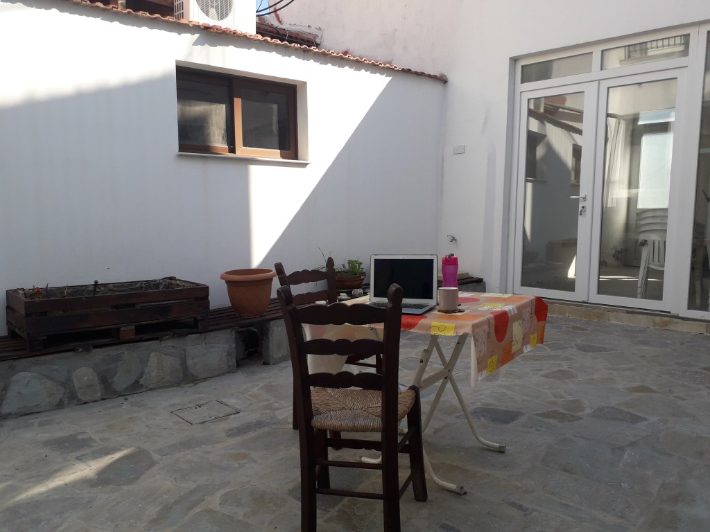 The coffee shop is typical of the hundreds that exist in Athens with a spacious interior, lots of windows but practically empty, as everyone is sitting outside.